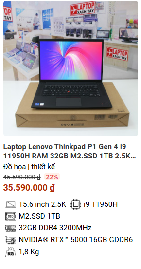 Từ lâu, dòng Laptop Lenovo Thinkpad P1 đã là dòng máy trạm chuyên nghiệp nổi tiếng của hãng Thinkpad. Với dòng Thinkpad P1 sẽ phù hợp cho những bạn cần 1 chiếc máy gọn nhẹ, nhưng vẫn đáp ứng nhu cầu laptop cấu hình mạnh mẽ. bền bỉ để làm đồ họa 3D, thiết kế , xây dựng.