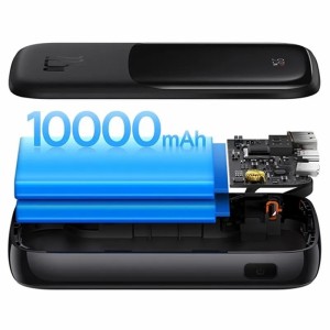 - Battery type: Li-Polymer - Capacity: 10000mAh, 3,7V/37Wh - Rated capacity: 5800mAh (5V/3A) - USB-C cable output: 4,5V/5A, 5V/4,5A, 5V/3A, 9V/2A, 12V/1,5A - USB-C output: 5V/3A, 9V/2,22A, 12V/1,5A - USB-A output: 4,5V/5A, 5V/4,5A, 5V/3A, 9V/2A, 12V/1,5A - USB-C input: 5V/3A, 9V/2A - Lightning input: 5V/2A, 9V/2A - Total output: 5V/3A Max - Supported charging protocols: Quick Charge, FCP, SCP - Dimensions: 117 x 70.6 x 25 mm - Weight: about 236g