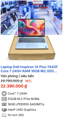 - » [TOP 1]Laptop Dell Inspiron 14 Plus 7440F Core 7 240H RAM 16GB M2.SSD 512GB 2.5K