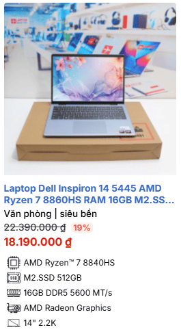 - » [TOP 2]Laptop Dell Inspiron 14 5445 AMD Ryzen 7 8860HS RAM 16GB M2.SSD 512GB 2.2K
