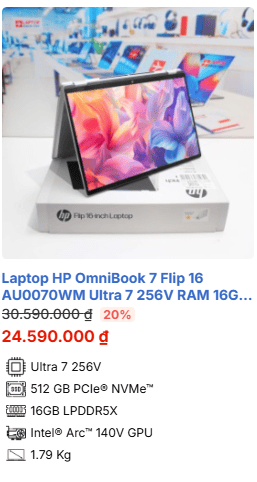 - » [TOP 4]Laptop HP OmniBook 7 Flip 16 AU0070WM Ultra 7 256V RAM 16GB M2.SSD 512GB 2K Cảm ứng lật xoay 360 độ