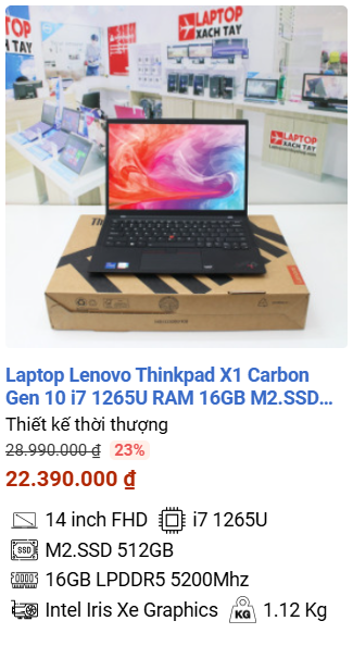 - » [TOP 3]Laptop Lenovo Thinkpad X1 Carbon Gen 10 i7 1265U RAM 16GB M2.SSD 512GB FHD