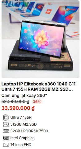 Laptop HP Elitebook x360 1040 G11 Ultra 7 155H RAM 32GB M2.SSD 512GB FHD Cảm ứng lật xoay 360 độ