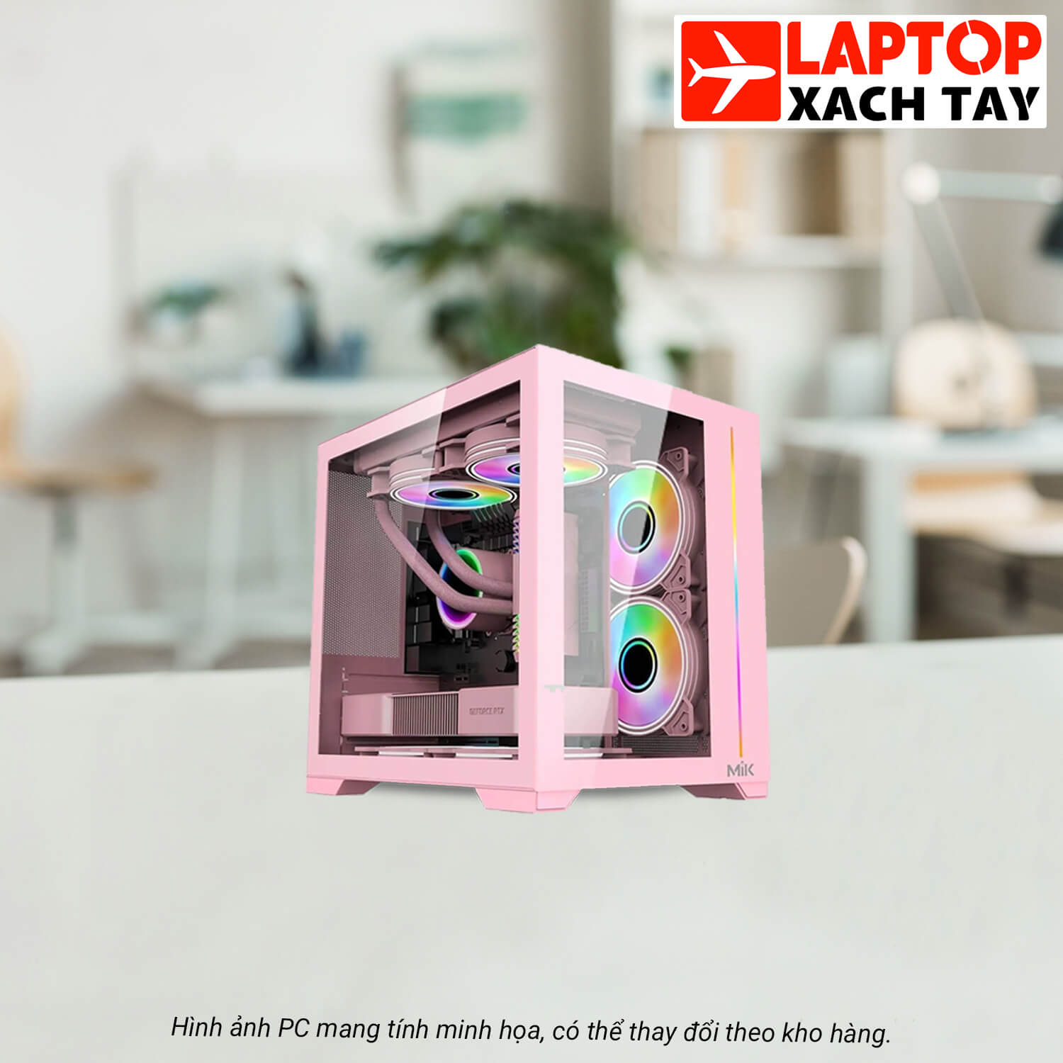 Bộ sản phẩm gồm: Thùng PC, màn hình, cáp nguồn, chuột, phím, lót chuột